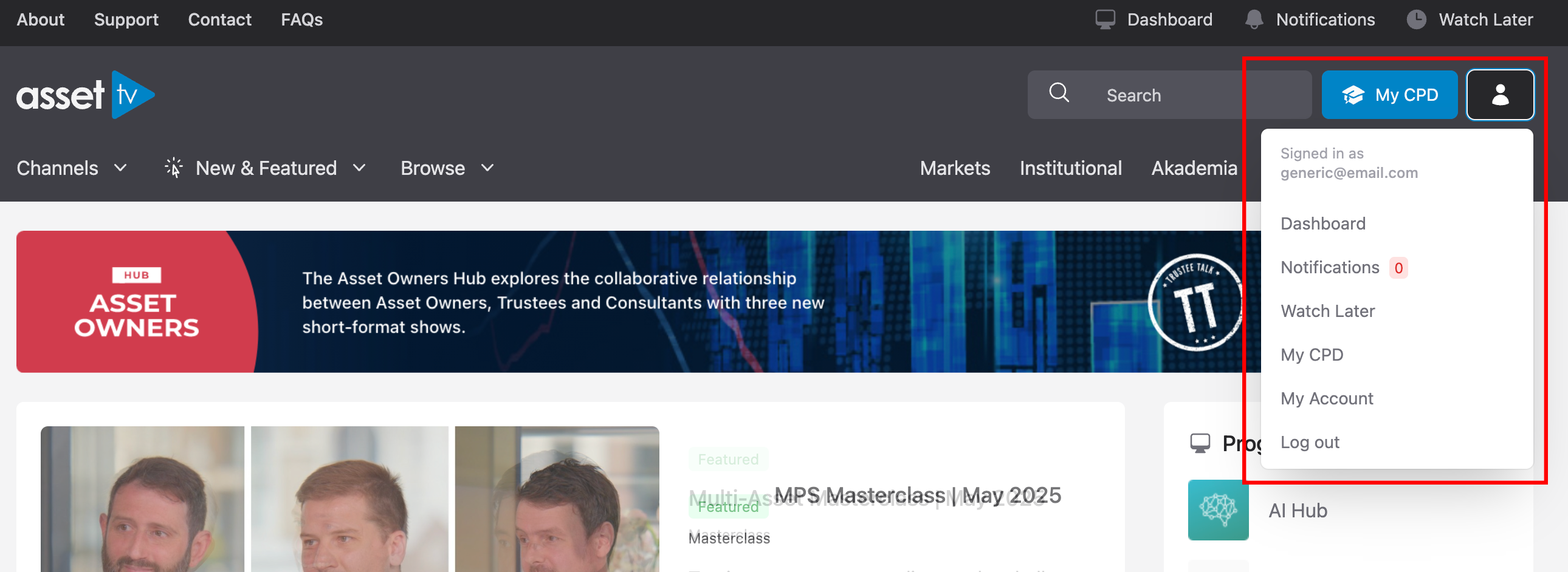 We've introduced a whole host of new features to help you get the most out of Asset TV! To access them, simply sign in using your email and password. If you've linked your account, you can also sign in via LinkedIn. Once you're logged in, you'll see the new features menu conveniently located in the top right corner of the page.